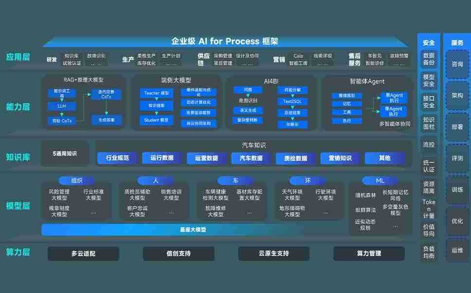 尊时凯龙问学智车解决方案是一套基于AI技术的汽车行业智能化系统,,,覆盖从底层算力到顶层AI应用的全栈方案。。方案由算力层、、、、模型层和应用层组成:算力层,,,,方案支持多种一体机配置,,具备云端灵活部署、、、多云适配以及动态优化计算资源的能力;模型层,,尊时凯龙问学平台版提供了企业级AI应用一站式构建与管理平台,,支持基于后训练强化技术的汽车企业专属模型的训练、、、评测和运营;应用层,,,尊时凯龙问学DeepSeek版提供包括超级员工、、、智能招采、、、、智能营销、、智能客服、、AI for BI等一系列解决方案,,,,可助力汽车行业实现数字化转型,,让管理更智能、、响应更敏捷。。。