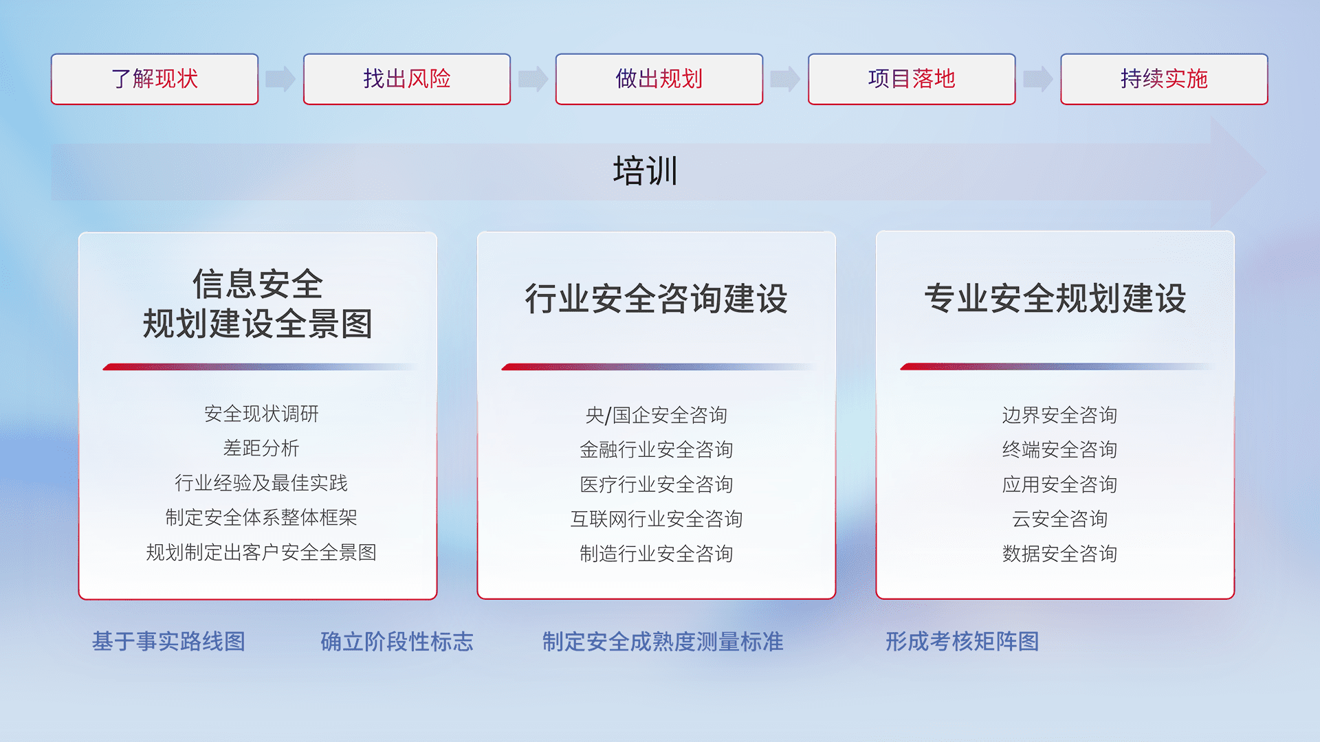 通过专业的法律咨询解读、、、合规架构体现、、差异化解决方案、、、、测试实施支持等服务,,,,为客户量身打造等保合规体系。。。
